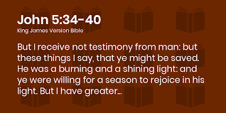‘Jullie hebben boden naar Johannes gestuurd en hij heeft een betrouwbaar getuigenis afgelegd. Niet dat ik het getuigenis van een mens nodig heb, maar ik zeg dit om jullie te redden.‘ (Uit Johannes 5 uit de verzen 30-47 de verzen 33-34)