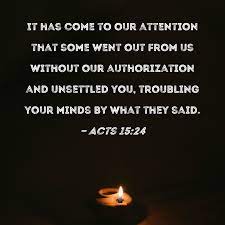 ‘Wij hebben vernomen dat enkelen van ons (!) jullie een bezoek hebben gebracht – zonder dat wij hen dat hadden gevraagd/opgedragen – en dat hun uitspraken aanleiding zijn geweest tot verwarring en verontrusting.‘ (Uit Handelingen 15 vers 24)