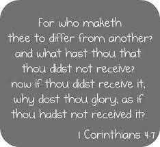 ‘Wie denken jullie wel dat jullie zijn? Bezitten jullie – wat het geloof betreft – ook maar iets dat jullie niet geschonken is? Alles is jullie geschonken, dus waarom scheppen jullie dan op alsof jullie het zelf verworven hebben?‘ (Paulus in 1 Korintiërs 4 vers 7)