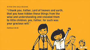 ‘Jezus zei toen ook: “Ik loof U Vader, Heere van de hemel en van de aarde, dat U deze dingen voor wijzen en verstandigen verborgen hebt, maar ze aan kinderkens hebt onthuld. Ja, Vader, want zó was het Uw welbehagen.‘ (Uit Matteüs 11 vers 25-26)