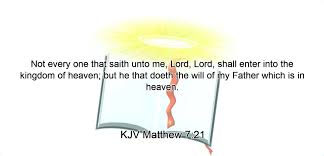 ‘Niet een ieder, die tot Mij zegt: Heere, Heere, zal het Koninkrijk van de hemel binnengaan, alleen wie handelt naar de wil van Mijn hemelse Vader.’ (Uit Matteüs 7 vers 21)
