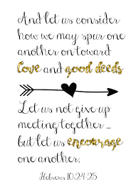 ‘Laten we opmerkzaam blijven en elkaar ertoe aansporen lief te hebben en goed te doen, en in plaats van weg te blijven van onze samenkomsten (erediensten??), zoals sommigen doen, elkaar juist bemoedigen, en dat des te meer naarmate wij de dag van Zijn komst zien naderen.‘ (Uit Hebreeën 10 de verzen 24-25).