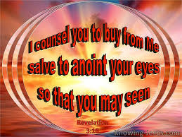 ‘Jullie zeggen dat je rijk bent, dat jullie alles hebben wat je maar wilt en niets meer nodig hebben. Jullie beseffen niet hoe ongelukkig jullie zijn, hoe armzalig, berooid, blind en naakt. Daarom raad ik jullie aan: koop van Mij goud dat in het vuur gelouterd is, en jullie zullen rijk zijn; witte kleren om je te kleden en om je naaktheid mee te bedekken, zodat jullie je niet meer hoeven te schamen; zalf voor jullie ogen, zodat jullie weer kunnen zien. Iedereen die ik liefheb wijs ik terecht en bestraf ik. Zet jullie dus volledig in en breek met het leven dat jullie nu leiden. Ik sta voor de deur en klop aan. Als iemand Mijn stem hoort en de deur opent, zal Ik binnenkomen, en wij zullen samen eten, Ik met hem/haar en hij/zij met Mij.‘ (Uit Openbaring 3 : 14-22 de verzen 17-20)
