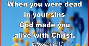 ‘Jullie waren dood door al jullie zonden en door jullie onbesneden staat, maar God heeft jullie samen met Christus levend gemaakt toen Hij ons al onze zonden kwijtschold.’ (Uit Kolossenzen 2 vers 13)