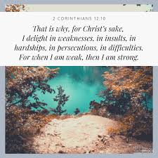 ‘Omdat Christus mij kracht schenkt, schep ik vreugde in mijn zwakheid: in beledigingen, nood, vervolging en ellende. In mijn zwakheid ben ik sterk.’ (Uit 2 Korintiërs 12 vers 10)