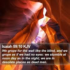 (Uit Jesaja 59 : 9-15 vers 10 – zie ook Openbaring 3 : 14-22)