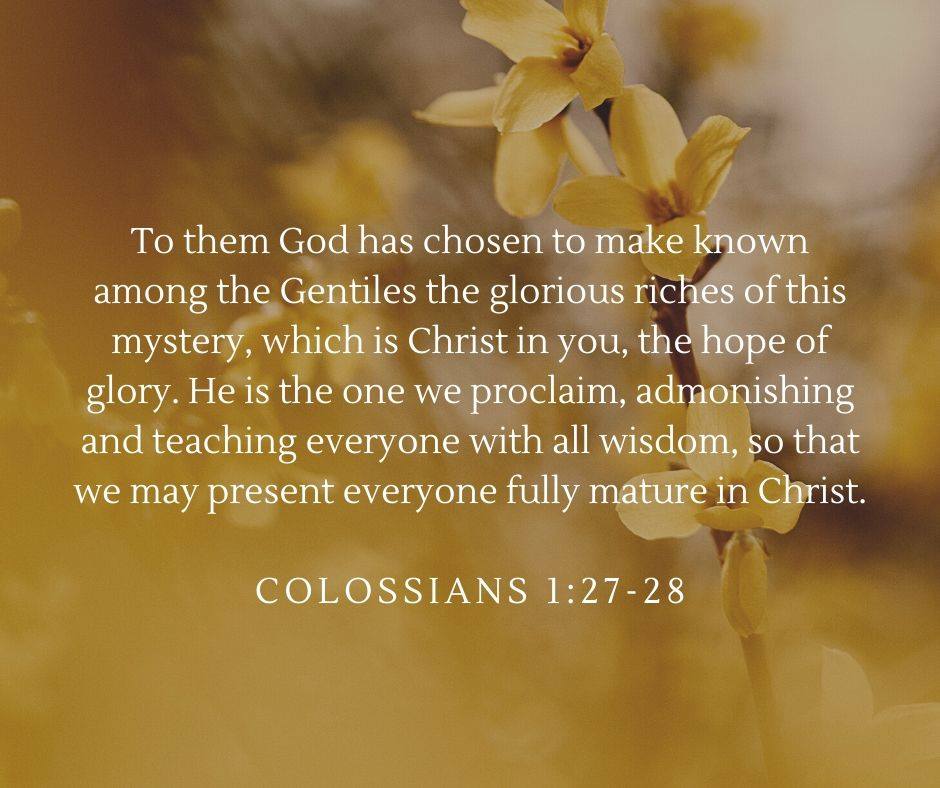 ‘Toen jullie gedoopt werden zijn jullie immers met hem begraven, en Met Hem zijn jullie ook tot leven gewekt. omdat jullie geloven in de kracht van God Die Hem uit de dood heeft opgewekt. Jullie waren dood door jullie zonden en jullie onbesneden staat, maar God heeft jullie samen met Christus levend gemaakt toen Hij ons al onze zonden kwijtschold. Hij heeft het document met voorschriften, waarin wij werden aangeklaagd, uitgewist en het vernietigd door het aan het kruis te nagelen. Hij heeft Zich ontdaan van de machten en krachten, Hij heeft hen openlijk te schande gemaakt en in Christus over hen getriomfeerd.’ (Uit Kolossenzen 2 de verzen 12-15)