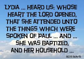 ‘Een van onze toehoorders was een vrouw uit Tyatira die in purperstoffen handelde, ze heette Lydia en vereerde God. De Heer opende haar hart voor de woorden van Paulus.’ (Uit Handelingen 16 vers 14)