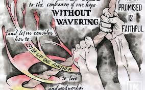 ‘We zeggen jullie dit nu wel broeders en zusters, maar we zijn ervan overtuigd dat jullie – door doop en geloof – op de goede weg bent en gered zult worden.’ (…) ‘Het is onze vurige wens dat ieder van jullie dezelfde ijver aan de dag blijft leggen, totdat alles waarop wij hopen verwezenlijkt zal zijn, en dat jullie niet achter blijven, maar in het spoor treedt van hen van hen die dankzij hun standvastig geloof ontvangen hebben wat hun beloofd was.’ (…) ‘Laten we zonder te wankelen (in het geloof!) datgene belijden waarop we hopen, want Die de belofte gedaan heeft is trouw. Laten we (daarom) opmerkzaam blijven en elkaar aansporen lief te hebben en goed te doen en in plaats van weg te blijven van onze samenkomsten, zoals sommigen doen, elkaar juist bemoedigen, en dat des te meer naarmate wij de dag van Zijn komst zien naderen.’ (Uit Hebreeën uit de verzen 9-1 en Hebreeën 10 de verzen 23-25).
