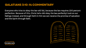 ‘Want zovelen als er uit de werken der wet zijn, die zijn onder den vloek; want er is geschreven: Vervloekt is een iegelijk, die niet blijft in al hetgeen geschreven is in het boek der wet, om dat te doen. En dat niemand door de wet gerechtvaardigd wordt voor God, is openbaar; want de rechtvaardige zal uit het geloof leven. Doch de wet is niet uit het geloof; maar de mens, die deze dingen doet, zal door dezelve leven. Christus heeft ons verlost van den vloek der wet, een vloek geworden zijnde voor ons; want er is geschreven: Vervloekt is een iegelijk, die aan het hout hangt. Opdat de zegening van Abraham tot de heidenen komen zou in Christus Jezus, en opdat wij de belofte des Geestes verkrijgen zouden door het geloof.‘ (Uit Galaten 3 de verzen 10-14)