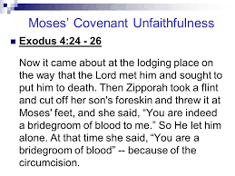 En Zippora ziet dit snel in. Zij en haar man hebben ongetwijfeld vaak over Abraham, de stamvader van Israël (en van Mozes) gesproken. En daarbij heeft Zippora zeker ook gehoord, wat er op Gods bevel moest gebeuren, als er uit Abrahams nageslacht een zoon geboren werd. Het nalaten van de besnijdenis van een zoon van Abraham had de doodstraf tot gevolg (Gen. 17:14). In Midian was het ook niet onbekend gebleven, dat de Midianieten verre familie waren van Abraham, daarom moesten ook zij volgen wat God aan Abraham had opgedragen. De kinderen van Abraham moesten het teken van Gods verbond dragen en juist die besnijdenis had Mozes bij zijn zoon (Eliëzer) achterwege gelaten. Was Mozes soms zelf niet net als alle andere Israëlieten in Gosen besneden?! Kon het gekende teken van de besnijdenis voortaan achterwege worden gelaten?