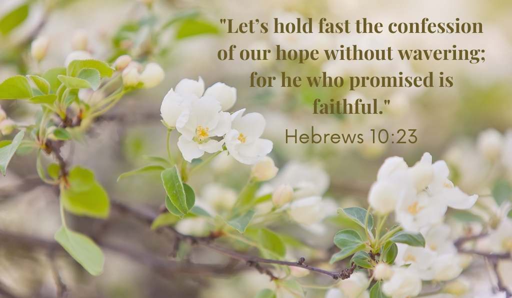 ‘We hebben nu een hogepriester die dienst doet in het huis van God; laten we God dan naderen met een oprecht hart en een vast geloof, nu ons hart gereinigd is, wij van een slecht geweten bevrijd zijn en ons lichaam met zuiver water gewassen. Laten we zonder te wankelen datgene blijven belijden waarop we hopen, want Hij Die de belofte gedaan heeft is trouw.’ (Uit Hebreeën 10 uit de verzen 19-25 : 21-23)