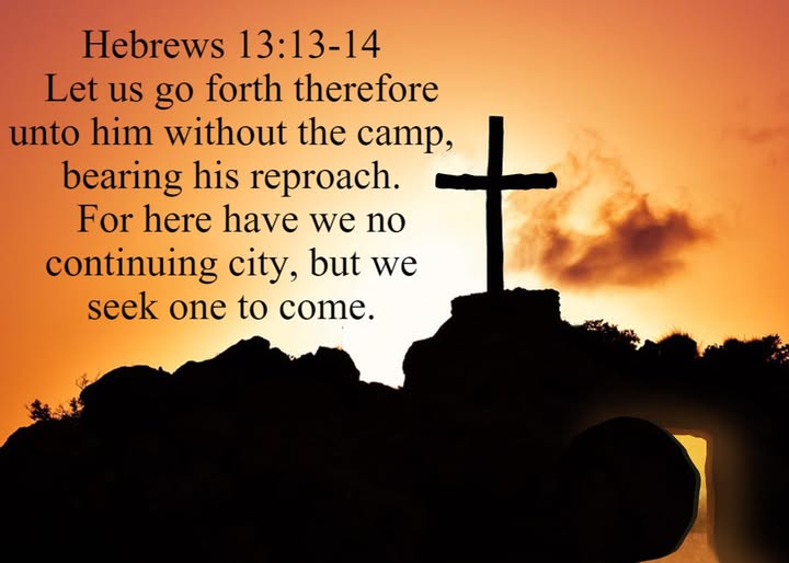 Hij ging uit, dragende Zijn kruis. Laat ons gaan buiten de legerplaats, buiten de stad Gods die hierbeneden ligt. Wij hebben hier geen blijvende stad. En de toekomende stad? – Wie heeft die in zijn hand? De duivel zéker niet; de zonde ook niet; de vrome wereld nog minder. En al schijnt het ook dat God je uitsluit – laat je van het doel niet afbrengen. Houd aan om ontferming en genade. De gehele strijd is slechts een schermutseling om je de genade van Christus en de liefde van God te laten prijsgeven, opdat je de gemeenschap met de Heilige Geest – in het midden van Zijn gemeente (1), AJ – zult ontberen.